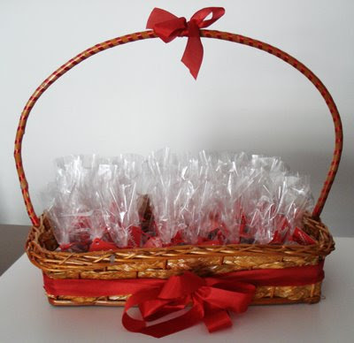 Lembram da Joaninha Sorridente? Ela virou lembrança do nascimento da Betina! Fizemos 60 mini cupcakes de joaninhas, embulhamos com papel transparente e colocamos um tag com nome e data de nascimento com uma fitinha vermelha. Para completar, arrumamos tudo em uma cesta. Seja bem-vinda Betina!